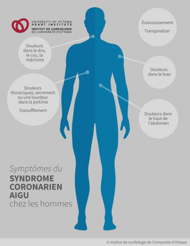 Le syndrome coronarien aigu peut s’observer au repos ou pendant l’exercice. Voici certains des symptômes qui peuvent apparaître :