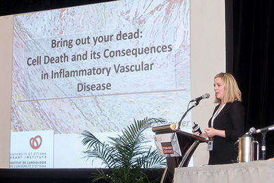 « On s’est beaucoup intéressé à la façon dont l’athérosclérose se manifeste, mais ce n’est qu’au cours de la dernière décennie qu’on a compris qu’il s’agit d’une maladie inflammatoire », a dit Katey Rayner, Ph.D., chercheuse à l’Institut de cardiologie de l’Université d’Ottawa, qui a coprésidé la conférence avec Subash Sad, Ph.D., chercheur à l’Université d’Ottawa.