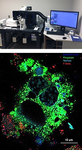 The Zeiss Elyra S.1 LSM 880 with Airyscan confocal laser scanning microscope offers high-sensitivity, enhanced 3D resolution in x, y and z, and high-image acquisition speed in one system.