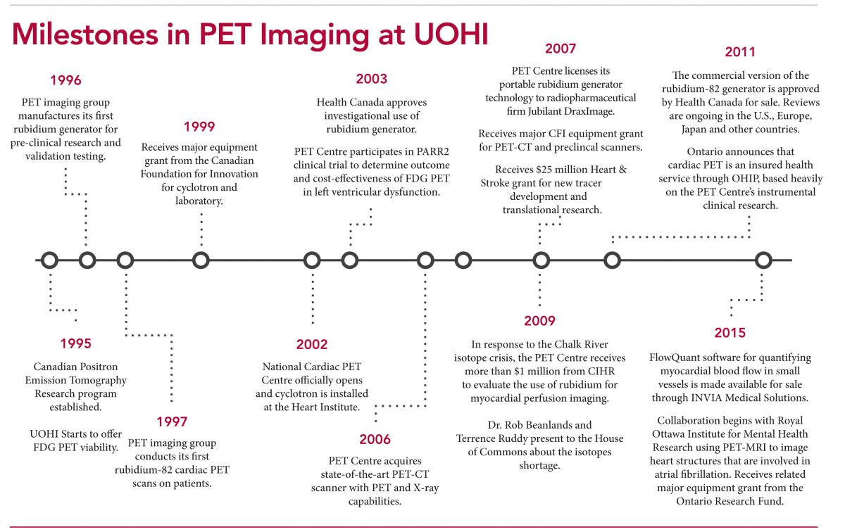 Shoehorned into a small room, the first positron emission tomography (PET) scanner at the University of Ottawa Heart Institute made possible a dedicated PET imaging service for heart patients one day a week. That was in 1995, and cardiologist Rob Beanlands, MD, physicist Rob deKemp, PhD, and nuclear medicine technologist May Aung were excited to launch the PET imaging research program.