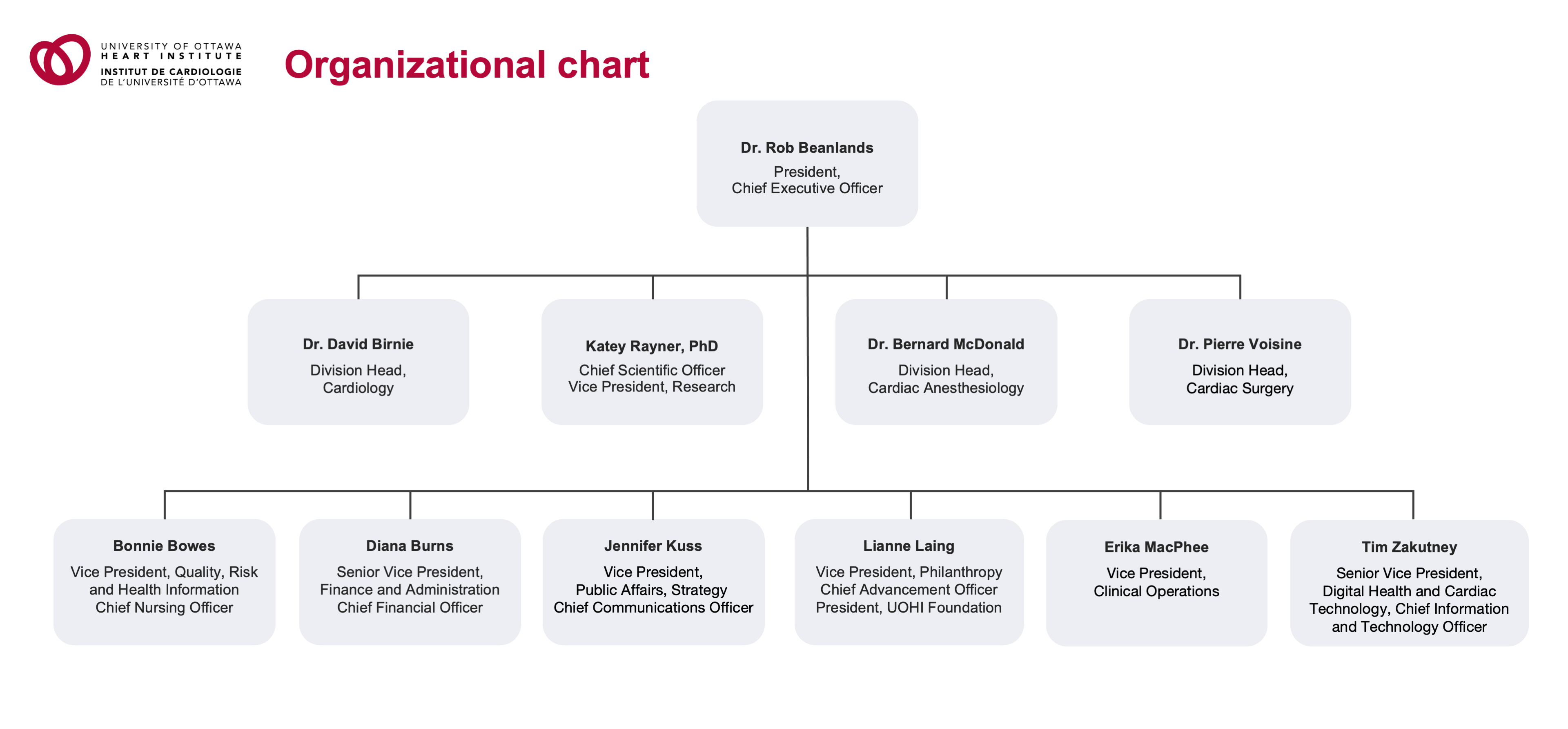 Organizational chart of the University of Ottawa Heart Institute. Updated February 2025. Click to enlarge.